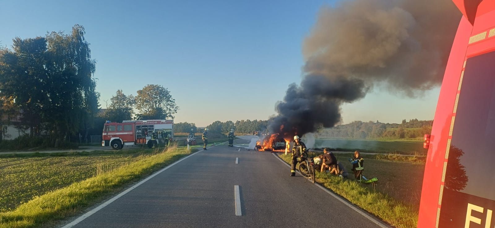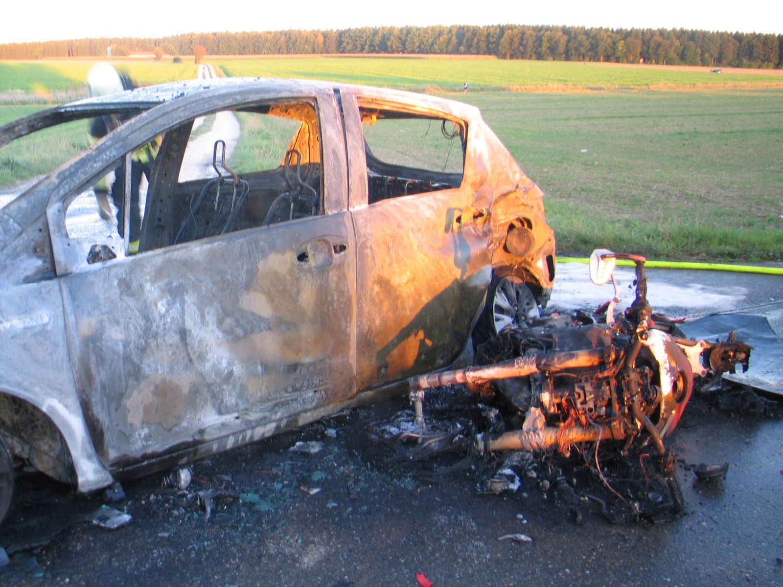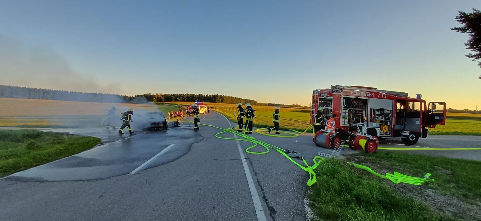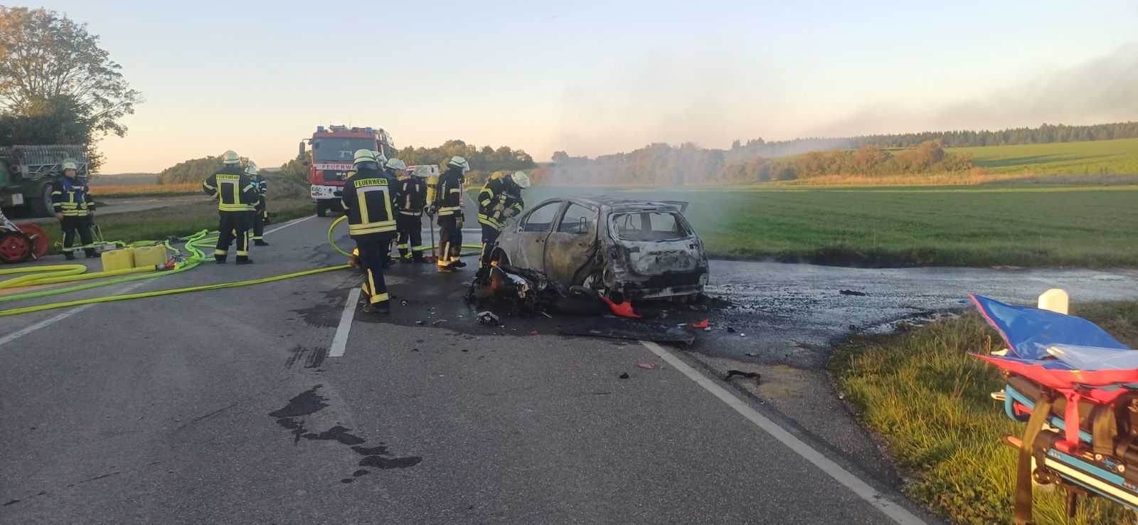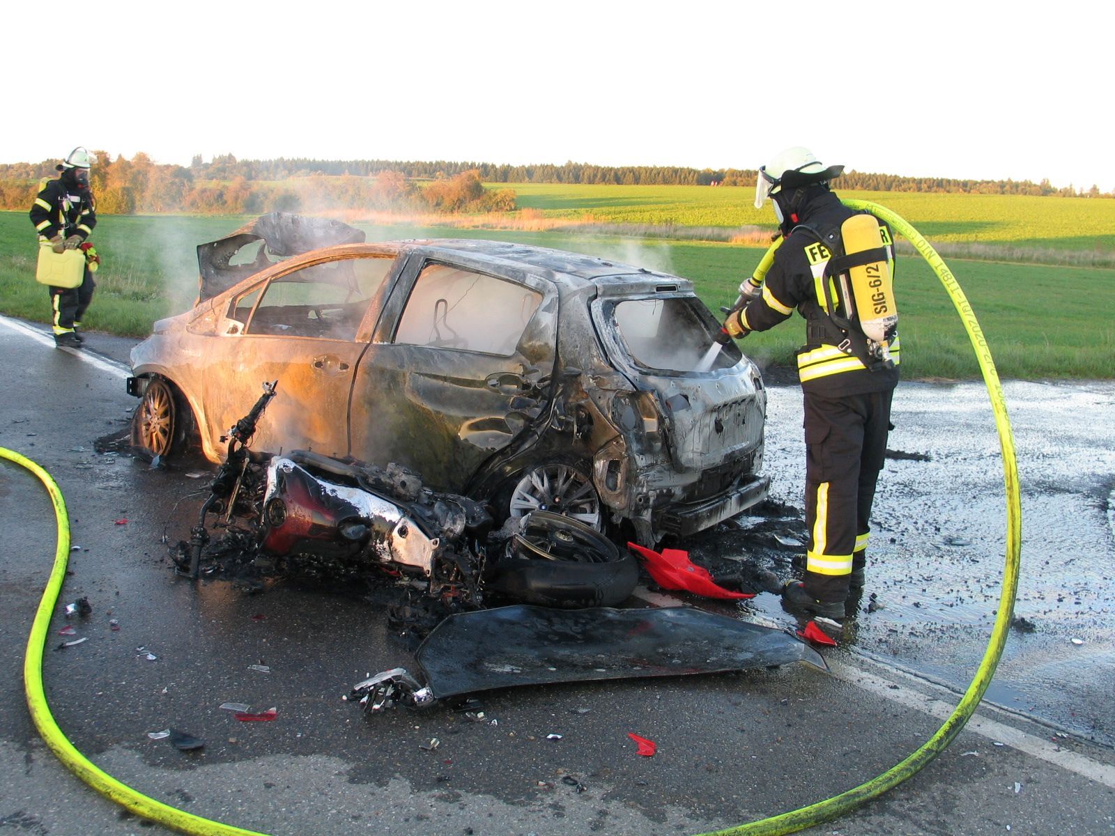 Auf der Kreisstraße 8241 zwischen Krauchenwies und Hausen a. A. kam es am Mittwochabend zu einer heftigen Kollision zwischen einem Pkw und einem Motorrad. Dabei gerieten beide Fahrzeuge in Brand und brannten vollständig aus. Der Motorradfahrer wurde schwer verletzt und kam mit dem Rettungshubschrauber ins Krankenhaus. Auch der Pkw Fahrer kam mit Verletzungen ins Krankenhaus. Der genaue Unfallhergang wird noch ermittelt. Die Feuerwehr Krauchenwies löschte die Fahrzeuge und fing die Betriebsstoffe auf. Außerdem waren der Rettungsdienst, die Polizei und die Helfer vor Ort Gruppe Krauchenwies im Einsatz. Der Sachschaden stand noch nicht fest. Die Straße war mehrere Stunden gesperrt.