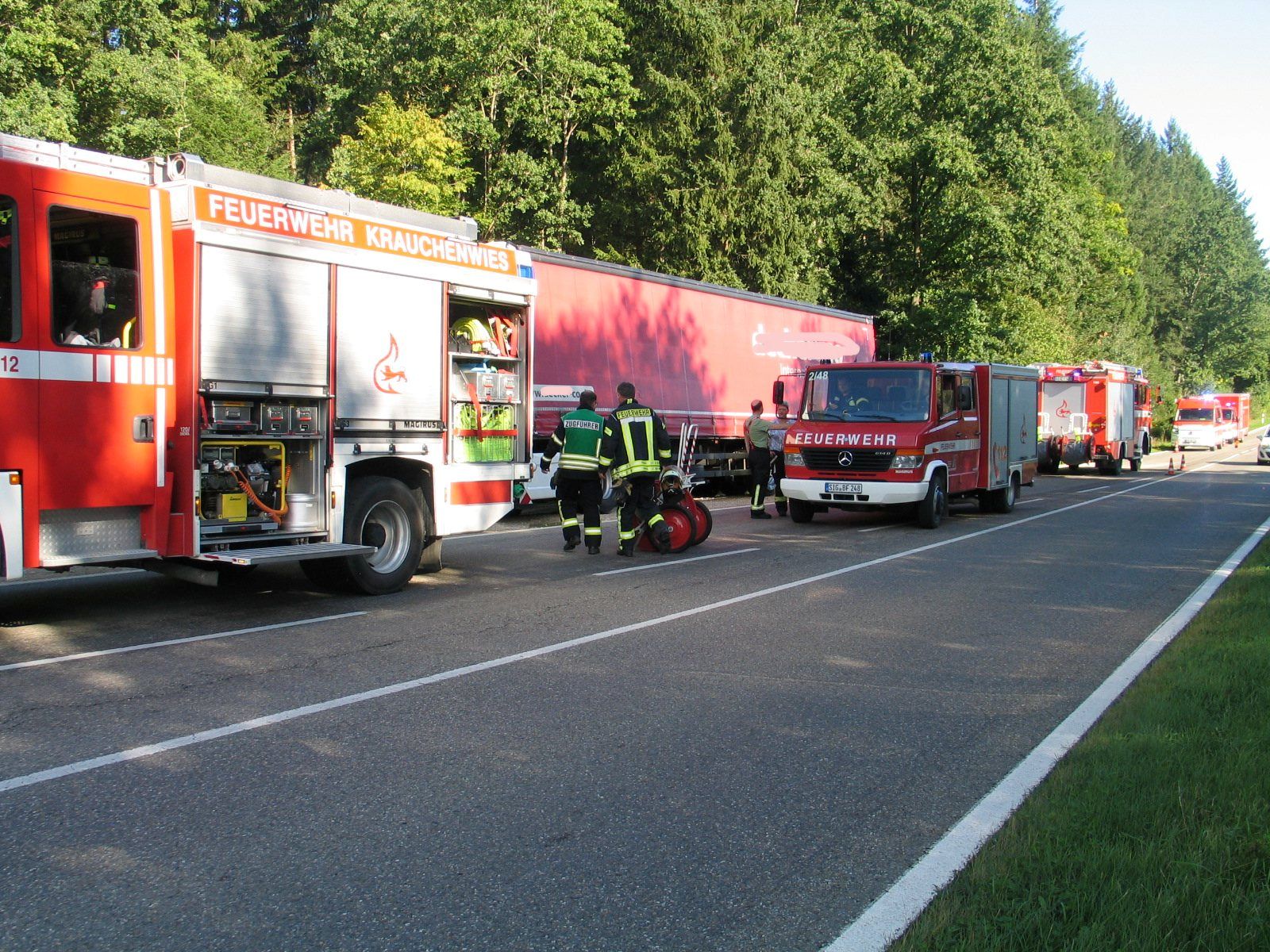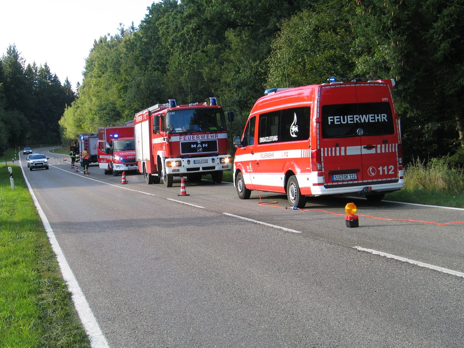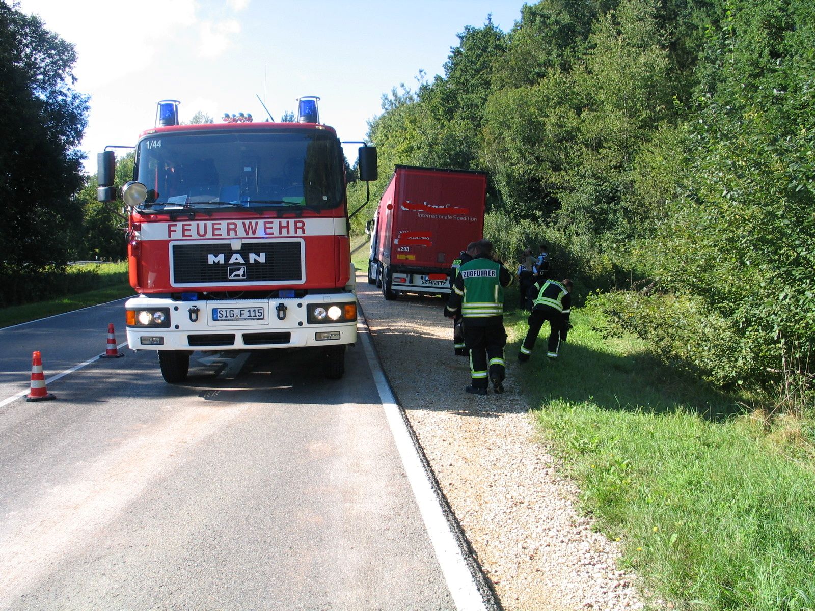 Am 09.09. fuhr ein Lkw gegen 15 Uhr von Ostrach Richtung Krauchenwies. Kurz vor Krauchenwies bemerkte der Fahrer, dass Öl von der Ladefläche lief. Auf Höhe der Abfahrt Spitzenweiler fuhr er rechts ran auf eine Kiesfläche. Was war passiert? Durch ein Bremsmanöver rutschte ein Behälter (IBC) mit 1000 Liter Speiseöl auf die Ladung davor und schlug Leck. Speiseöl trat aus und lief von der Ladefläche. Der Feuerwehr gelang es das Leck provisorisch zu schließen. Dann wurde ein Ersatzbehälter besorgt und das Öl umgepumpt. Das bereits ausgelaufene Öl wurde von der Ladefläche und von der Straße mittels Ölbinder aufgenommen. Der Einsatz dauert über zwei Stunden. Dabei kam es auf der L 286 am Einsatzort zu Behinderungen. Im Einsatz waren neben der Polizei der Löschbezirk 1 und 2. Ob und welche Maßnahmen auf dem Standplatz noch notwendig sind, entscheiden die zuständigen Behörden.