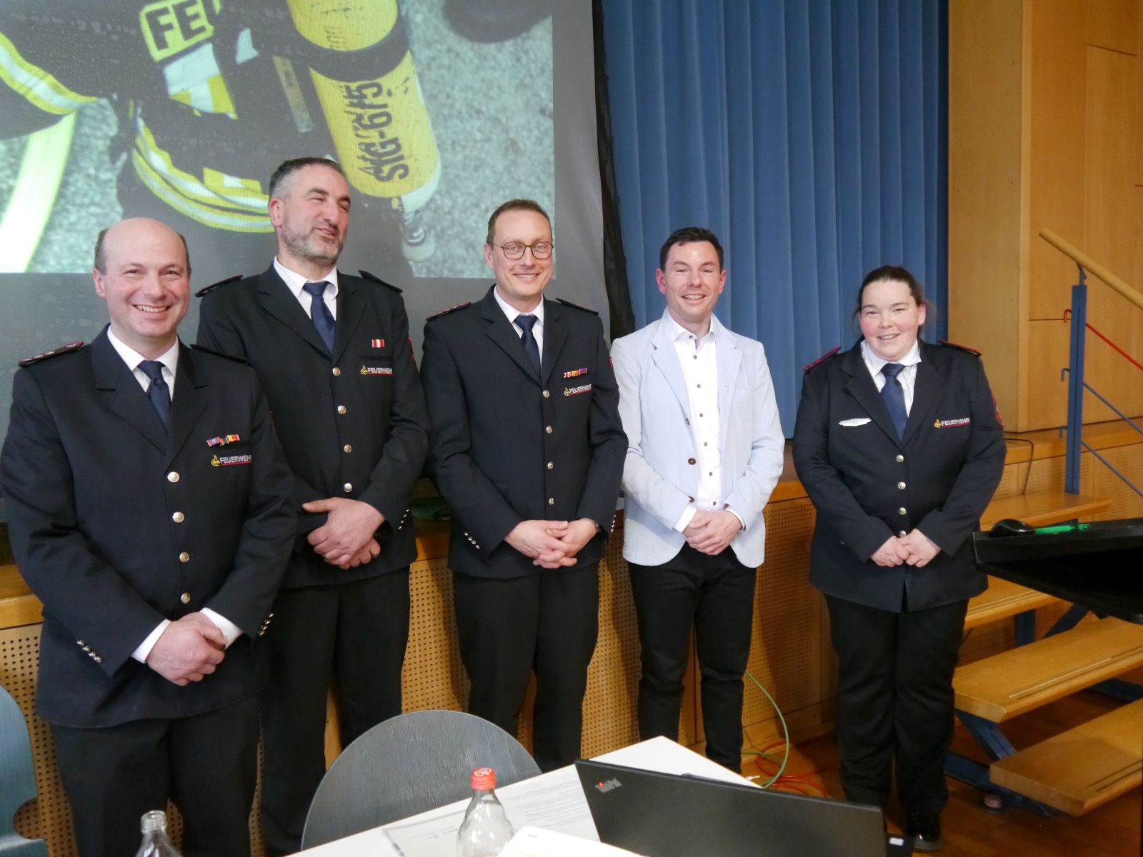 Bei der anschließenden Hauptversammlung gab es eine Beförderung und zahlreiche Ehrungen. Oliver L’Gaal wurde von Bürgermeister Manuel Kern zum Oberbrandmeister befördert.