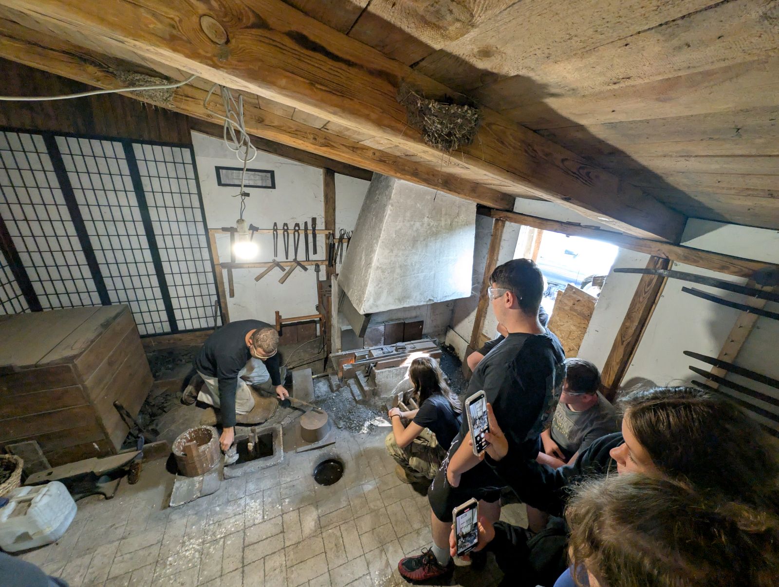 Der Donnerstag stand im Zeichen von Waffen und Militärtechnik. Begonnen hat der Tag damit, dass wir einen Schmied dabei unterstützen durften, ein Schwert nach japanischer Schmiedekunst herzustellen. Dabei durfte jeder mal mit anpacken. Parallel dazu haben andere von uns die Chance genutzt mit einem Imker seinen Bienen Stand zu besuchen, um seine Bienen ganz nah zu begutachten. Im Anschluss wurden Waffentechniken vom Speer zum Schwert, über Pfeil und Bogen bis hin zum heutigen Sturmgewehr vorgeführt. Nach der