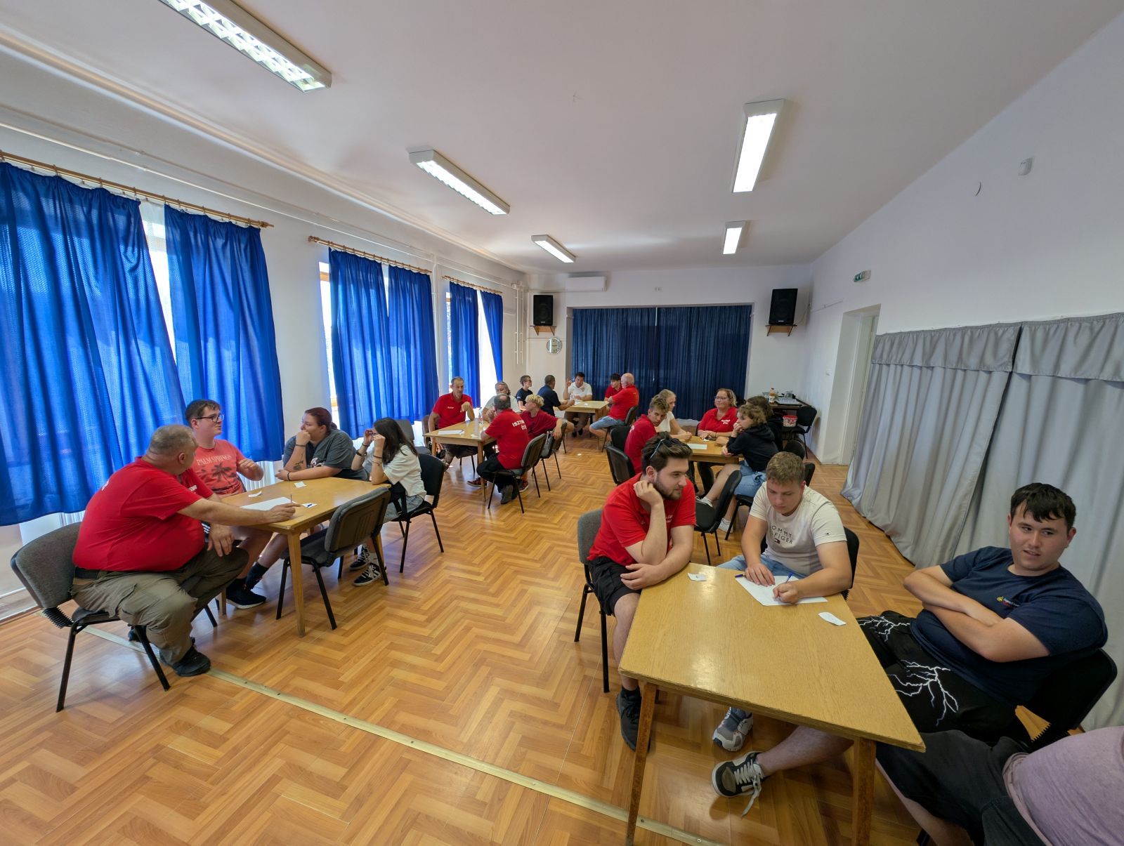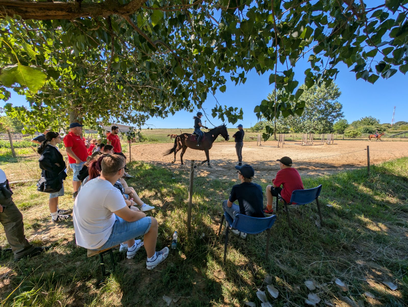Der Dienstag begann mit einem Frühstück und anschließender Fahrt zum Pferdehof nach Guttamasi. Dort erlebten wir, wie man Wildvögel fängt und beringt, um ihr Verhalten über einen großen Zeitraum zu verfolgen. Wir durften dort zwei Pferde striegeln und genossen danach eine Trainingsvorführung im Springreiten. Nach einem stärkenden Mittagessen fanden zusammen mit den Jugendlichen aus Isztimèr gesellige Spiele statt. Der Tag endete mit einer Führung durch die Kirche in Isztimèr. Das anschließende Abendessen verdauten wir dann noch bei einem Abend-Spaziergang durch Isztimèr.